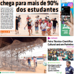 O jornal impresso Em Tempo do dia 24/11/2023 destaca: Merenda em Casa chega para mais de 90% dos estudantes.