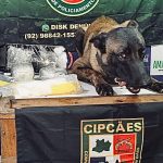 Cão policial encontra drogas avaliadas em R$ 38 mil dentro de caixas de papelão em lancha no AM