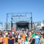 A faixa de areia em frente ao palco de 2,2 metros de altura foi tomada por cangas, guarda-sóis, bolsas com água, filtro solar, sanduíches.