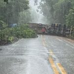 Acidente ocorreu durante a chuva e resultou no bloqueio da via