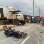 Casal fica ferido após motocicleta colidir contra caminhão na avenida das Flores
