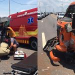 Acidente ocorreu após condutor de carro colidir com estrutura, nesta segunda-feira (1º)