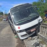 Micro-ônibus colide contra ponte no bairro Tarumã