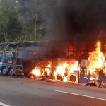 Imagens mostram a cabine do veículo totalmente em chamas.