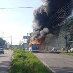 VÍDEO: Ônibus pega fogo em avenida na Zona Norte de Manaus