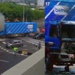 Carreta com combustível tomba, pega fogo e atinge 24 carros em rodovia