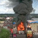 Vídeo: micro-ônibus executivo pega fogo na zona Norte de Manaus