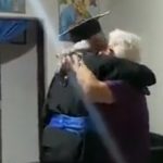 O diploma foi entregue pelo próprio filho do formando, professor na instituição