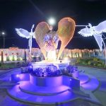 Escultura de três metros feita por gari homenageia vítimas da Covid-19 e profissionais da saúde em praça construída no cemitério Nossa Senhora Aparecida.
