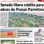 O jornal impresso Em Tempo do dia 20/12/2024 destaca: Senado libera crédito para obras do Prosai Parintins.