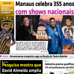 O jornal impresso Em Tempo do dia 22/10/2024 destaca: Manaus celebra 355 anos com shows nacionais.