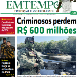 O jornal impresso Em Tempo do dia 05/09/2024 destaca: Criminoso perdem R$ 600 milhões.