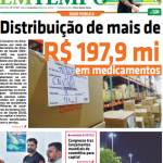 O jornal impresso Em Tempo do dia 14/05/2024 destaca: Distribuição de mais de R$ 197,9 mi em medicações.
