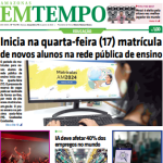O jornal impresso Em Tempo do dia 16/01/2024 destaca: Inicia na quarta-feira (17) matrícula de novos alunos na rede pública de ensino.