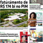 O jornal impresso Em Tempo do dia 17/01/2024 destaca: Projeção de faturamento de R$ 174 bi no PIM