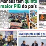O jornal impresso Em Tempo do dia 16 e 17/12/2023 destaca: Manaus tem quinto maior PIB do país.