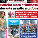 O jornal impresso Agora do dia 03/11/2023 destaca: Policial mata criminoso durante assalto a ônibus.