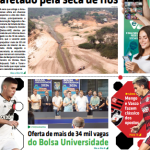O jornal impresso Em Tempo do dia 21 e 22/10/2023 destaca: Cotidiano de alunos afetado pela seca de rios.