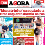 O jornal impresso Agora do dia 13/09/2023 destaca: 'Monstrinho' executado a tiros enquanto dormia na rua.