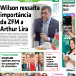 O jornal impresso Em Tempo do dia 23/06/2023 destaca: Wilson ressalta importância da ZFM a Arthur Lira.