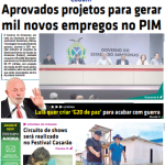 O jornal impresso Em Tempo do dia 27/04/2023 destaca: Aprovados projetos para gerar mil novos empregos no PIM.