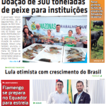 O jornal impresso Em Tempo do dia 04/04/2023 destaca: Doação de 300 toneladas de peixe para instituições.