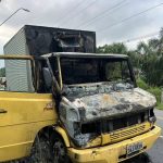 Segundo testemunhas, o veículo transportava alimentos no momento do incêndio.
