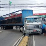 Carreta fica presa ao tentar passar ao lado de obra na Zona Leste de Manaus