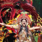 Ex-BBB emociona o público ao representar a “bela rapina” na lenda de Tamapú, durante apresentação do Garantido