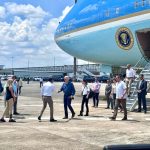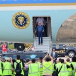 O líder da maior potência econômica mundial desembarcou na cidade vindo de Lima, capital do Peru, onde se encontrou com o presidente da China, Xi Jinping
