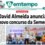 O jornal impresso Em Tempo do dia 16/05/2025 destaca: David Almeida anuncia novo concurso da Semed