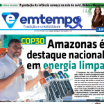 O jornal impresso Em Tempo dos dias 8 e 9 de novembro destaca: Amazonas é destaque nacional em energia limpa