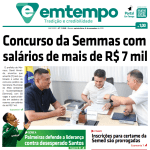 O jornal impresso Em Tempo do dia 6/11/2025 destaca: Concurso da Semmas com salários de mais de R$ 7 mil