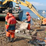 Operação conta com o apoio de uma balsa, bags, botes e uma retroescavadeira