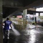 Agentes de limpeza da Secretaria de Limpeza Urbana (Semsulp) realizaram a varrição e raspagem do meio-fio e calçada ao longo dos 3.585 metros de extensão da ponte
