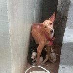 O cachorro foi abandonado em condições precárias, apresentando emagrecimento severo, anemia e infecções