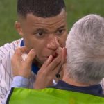 IMAGENS FORTES: Mbappé desloca nariz após trombada em jogo da França