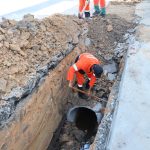Na via, a antiga tubulação rompeu, após construções irregulares em cima da rede de drenagem