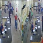 Câmeras de segurança registraram o momento em que um dos familiares agride um vigilante, quebra materiais e avança contra médicos
