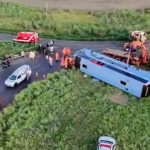 Ônibus capota, mata 10 e fere 36; crianças estão entre os mortos