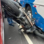 Motociclista sai ileso após moto ficar prensada entre dois ônibus em Manaus