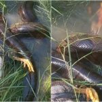 Vídeo impressionante mostra sucuri engolindo galo; veja vídeo