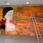 Artista visual indígena Sãnipã cria obra ao vivo em parede do Instituto Ling