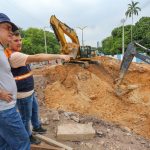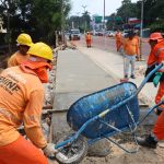 As equipes seguem na finalização dos últimos ajustes, os 50 metros do canteiro central foram concluídos, junto com os 200 metros de meio-fio e sarjeta, e agora as equipes atuam trabalhando no passeio público