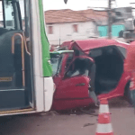 VÍDEO: Colisão entre carro e ônibus deixa motorista preso às ferragens em Manaus