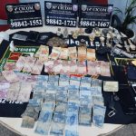 Com o grupo foi apreendido uma motocicleta, revólver, relógios, celulares, cordões, anéis, carro e dinheiro