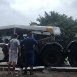 O ônibus do transporte coletivo estava com vários passageiros. Imagens mostram a gravidade do acidente