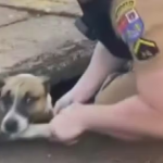 Cachorro fica preso em bueiro e é resgatado por policial militar