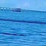 Banhistas registram jacaré gigante próximo à área de banho na Ponta Negra