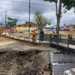 Além da ponte, está sendo finalizado o calçadão de concreto que segue de um canto ao outro da via